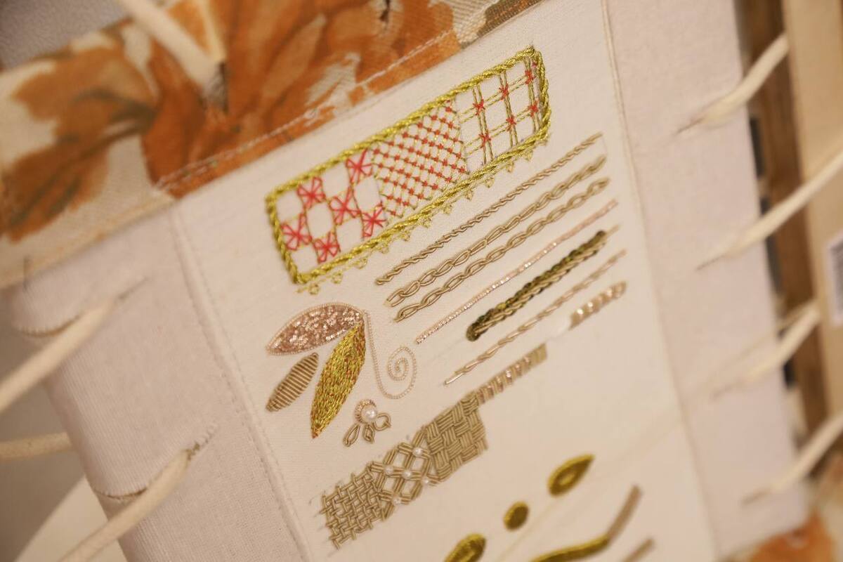 За три занятия участники познакомились с традиционными техниками золотной вышивки. Им рассказали секреты подготовки изделия, показали, как вышивать шнуром и работать с тонкой металлической канителью.