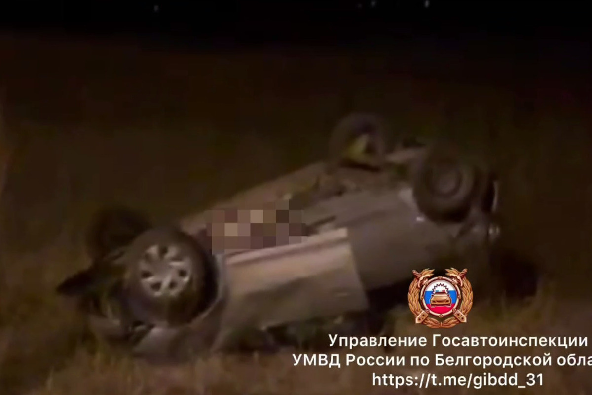 В Старооскольском округе опрокинулась иномарка: пострадал мужчина, фото: скриншот со страницы t.me/gibdd_31