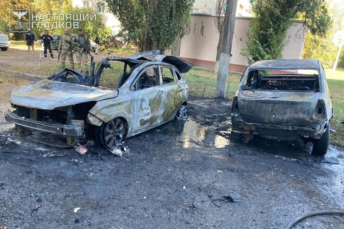 В облцентре две машины загорелись после падения обломков сбитого дрона. Сотрудники МЧС потушили огонь. Также повреждено остекление многоквартирного дома.