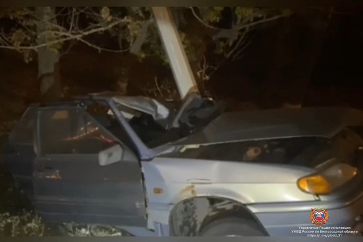 В Корочанском районе «ВАЗ» смяло при столкновении со столбом: двое пострадали, фото: скриншот видео пресс-службы Госавтоинспекции по белгородской области