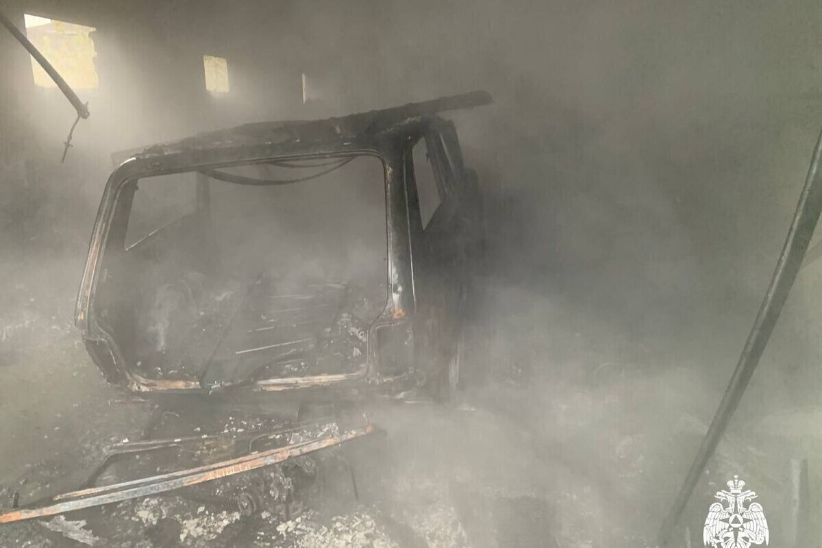 Огонь повредил 55 квадратных метров постройки и машину. Возгорание тушили девять человек с помощью двух единиц техники.