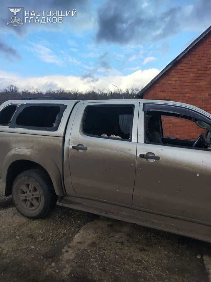В селе Нечаевка Белгородского округа при ударе FPV-дрона повреждены кузов, стекла и колеса машины. Также пострадали ограждение и помещение на территории предприятия.