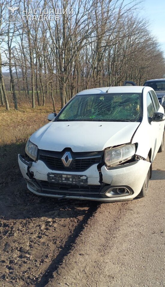 Возле села Посохово Валуйского округа FPV-дрон ударил по легковой машине. У нее разбито лобовое стекло и пострадала передняя часть кузова.
