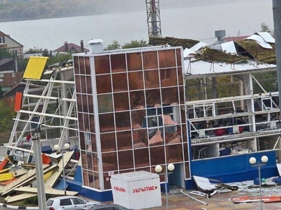 Здание соцобъекта частично разрушено. В двух многоквартирном доме повреждены кровли, окна, балконы и фасады. Осколки посекли пять автомобилей.