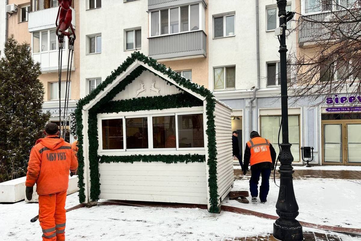 Специалисты поставили украшенные домики и домик Деда Мороза. Также подходит к концу сборка главной праздничной ели на Соборной площади.