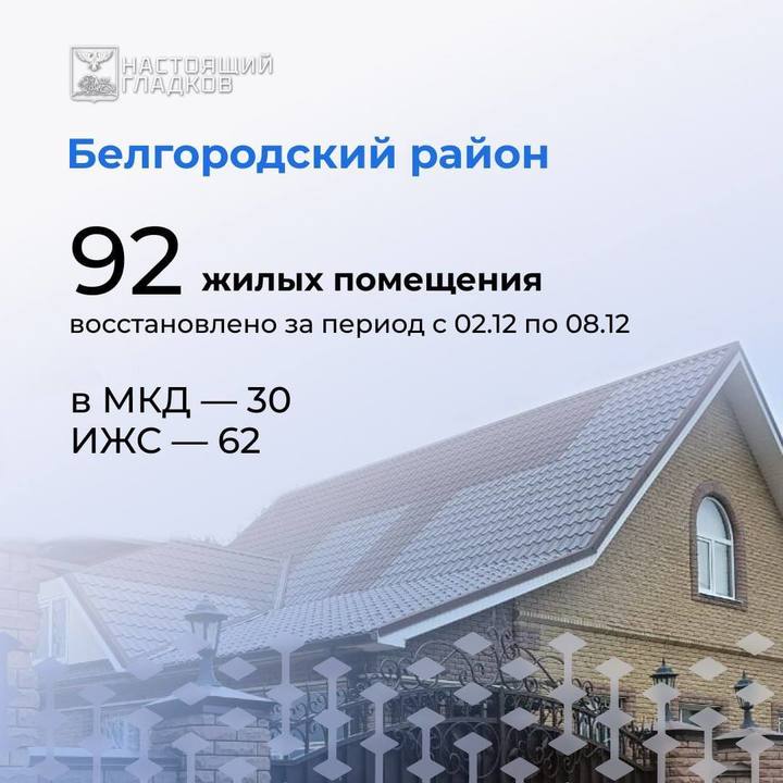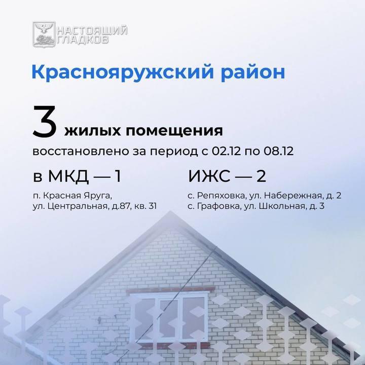 Ранее Вячеслав Гладков сообщал о необходимости восстановить порядка 6 тысяч домов и квартир.