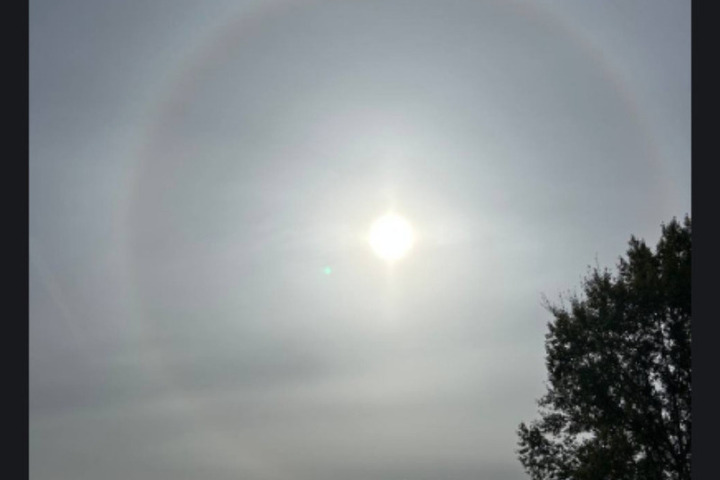 Старооскольцы могли наблюдать солнечное гало в пятницу, фото: скриншот со страницы t.me/okoskol