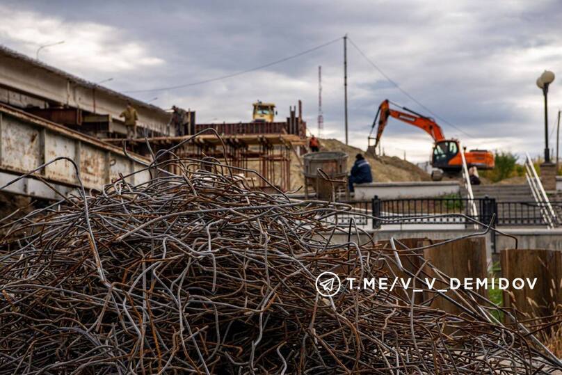 Сейчас специалисты трудятся на правой стороне от центра в сторону Харгоры. Они демонтировали старое покрытие, ограждения и освещение, убрали пролетные балки и приступили к усилению железобетонных конструкций. Сейчас подходит к концу бетонирование опор моста и начинается устройство ригелей.