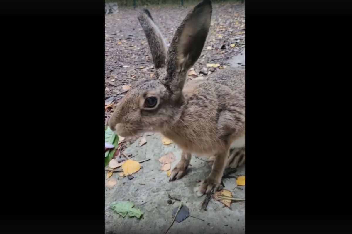 Белгородцам показали, как заяц из зоопарка наслаждается одуванчиками, фото: скриншот видео со страницы vk.com/belzoo31