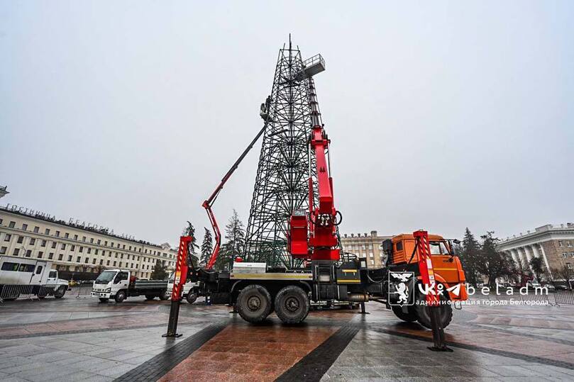 Мэрия Белгорода показала подготовку главной новогодней ели области. Специалисты завершают монтаж металлического каркаса. Затем ель оденут в пушистую декоративную хвою и украсят. За работу отвечают профессионалы управления «Белгорблагоустройство».