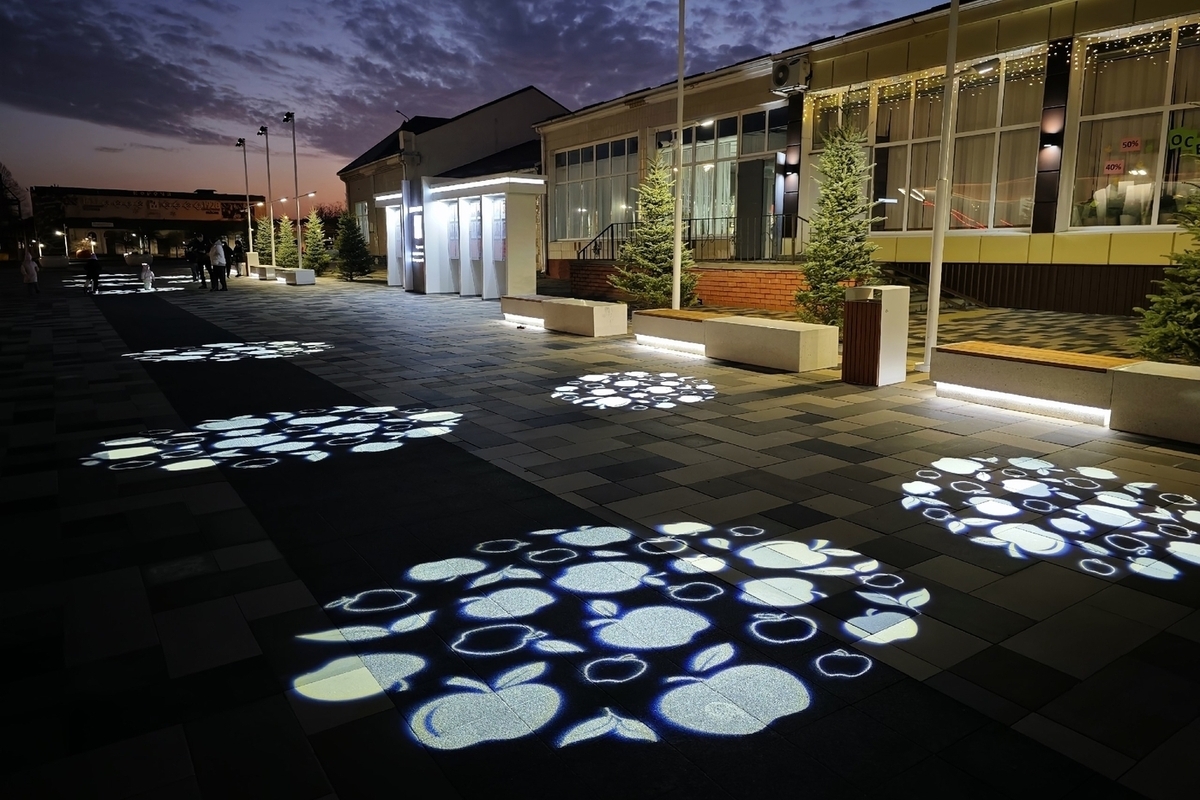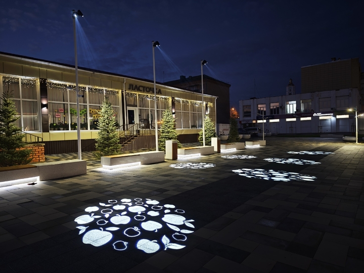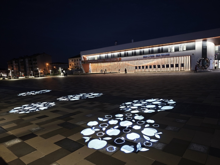 На площади в Короче Белгородской области появился яркий акцент – яблочная проекция. Ее можно увидеть в вечернее время.