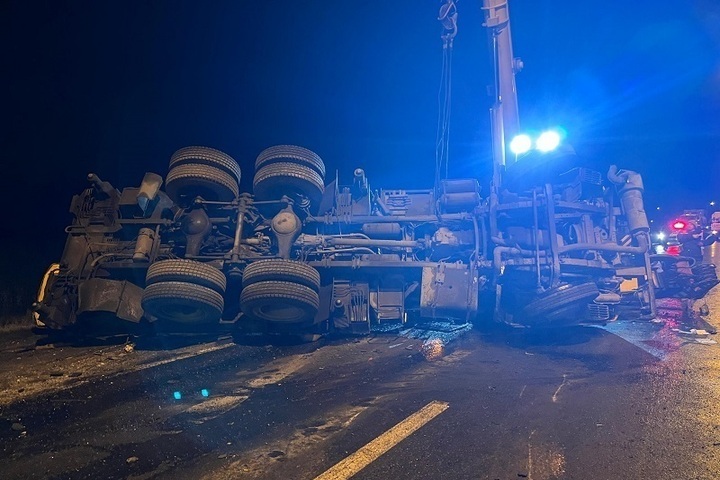 По предварительной информации, 62-летний водитель не справился с управлением и наехал на бордюрный камень. После этого грузовик оказался на встречной полосе и опрокинулся. В результате мужчина получил телесные повреждения, сообщили в пресс-службе УМВД региона.