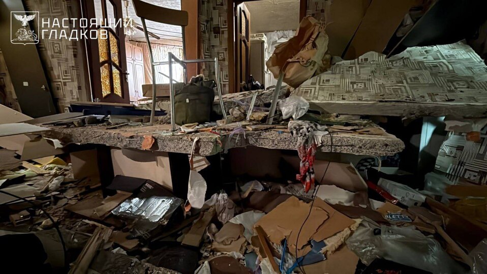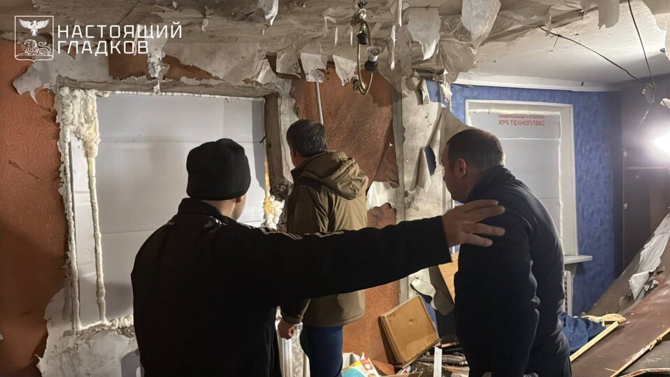 Гладков заехал на улицу Борисовскую, где несколько беспилотников атаковали многоквартирный дом. Первый дрон пробил окно, а второй – разрушил все внутри. Мужчина и полицейский, находившиеся в другой части квартиры, остались живы.