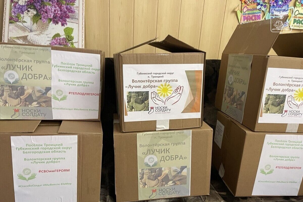 К акции присоединились серебряные волонтеры движения «Лучик добра» поселка Троицкий. Волонтеры вяжут носки, плетут маскировочные сети и собирают гуманитарные посылки.