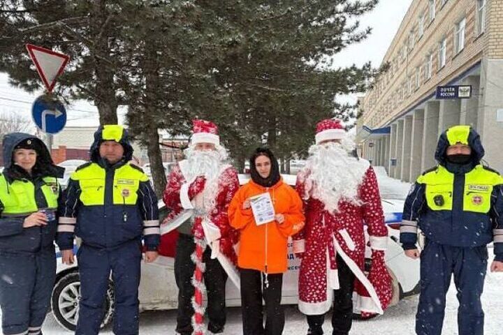 В Алексеевке Дед Мороз и волонтеры поздравили водителей с Новым годом