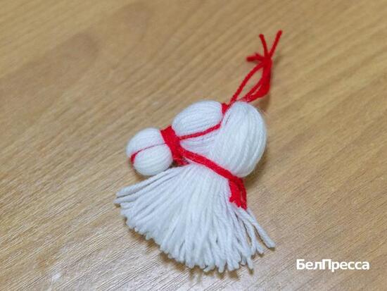 К Новому году Галина Ивановна подготовила для ребят мастер-класс по изготовлению небольшого сувенира – мини-лошадок. Для этого понадобится картон и пряжа «Пехорка». Белые нити нужно намотать и обрезать, после чего перетянуть красной ниткой. Так получается мордашка.