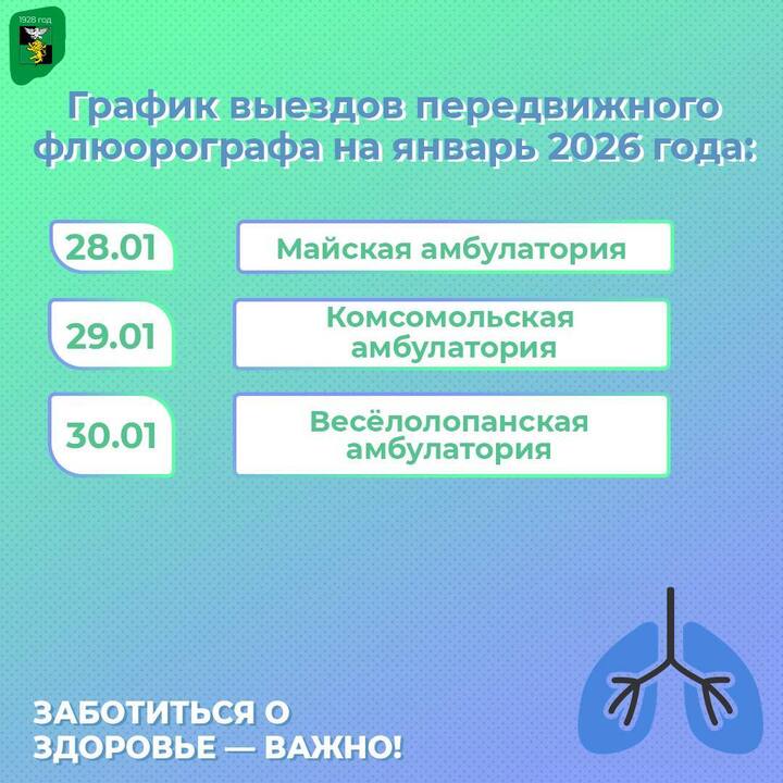 Глава администрации муниципалитета Татьяна Круглякова напомнила, что процедура позволяет обнаружить заболевания органов дыхания, в том числе туберкулез и онкопатологии, на ранних стадиях. Подробнее – в карточках ниже.